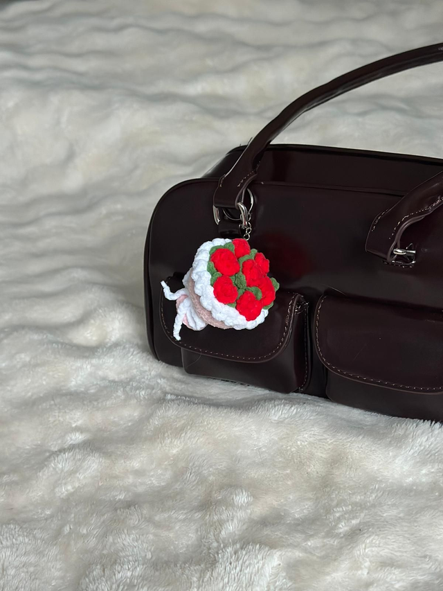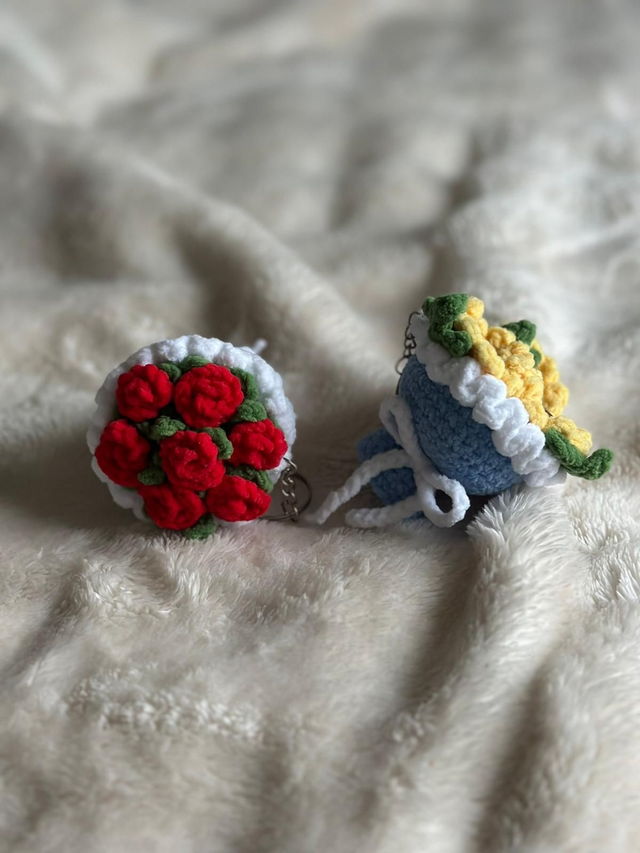 Ajoutez une touche florale, poétique et kawaii à votre sac ou à vos clés avec ce porte-clés bouquet de fleurs en crochet, entièrement fait main.