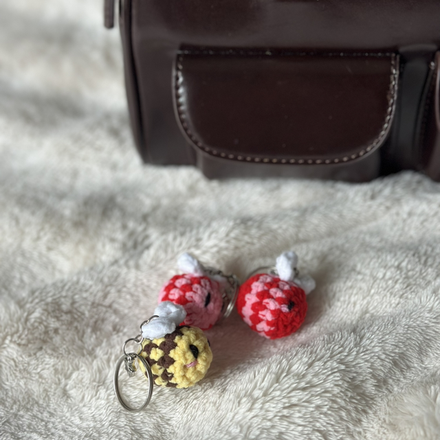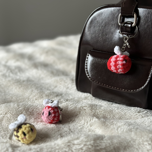 Apporte une touche originale à ton sac avec ce bijou de sac mini abeille St Valentin rouge et rose en crochet 🐝💛