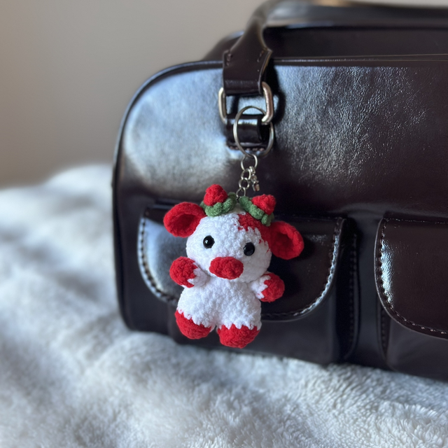 Apporte une touche de douceur et de gourmandise à ton sac avec cette adorable mini vache fraise 🍓🐄💗