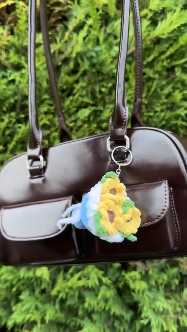 Ajoutez une touche florale, poétique et kawaii à votre sac ou à vos clés avec ce porte-clés bouquet de fleurs en crochet, entièrement fait main.